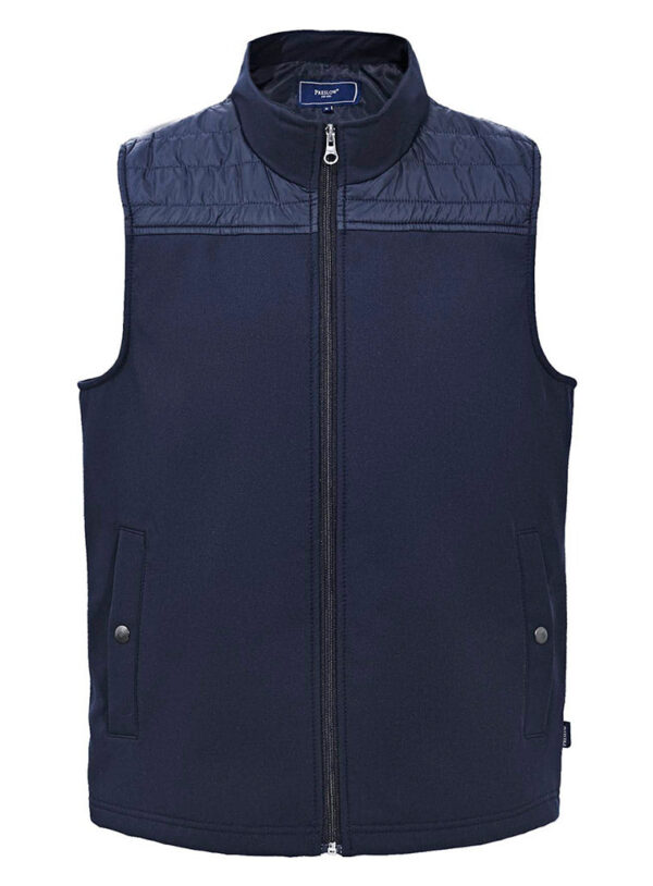 Cierre interior corporativo vertical para facilitar bordado de logotipo.